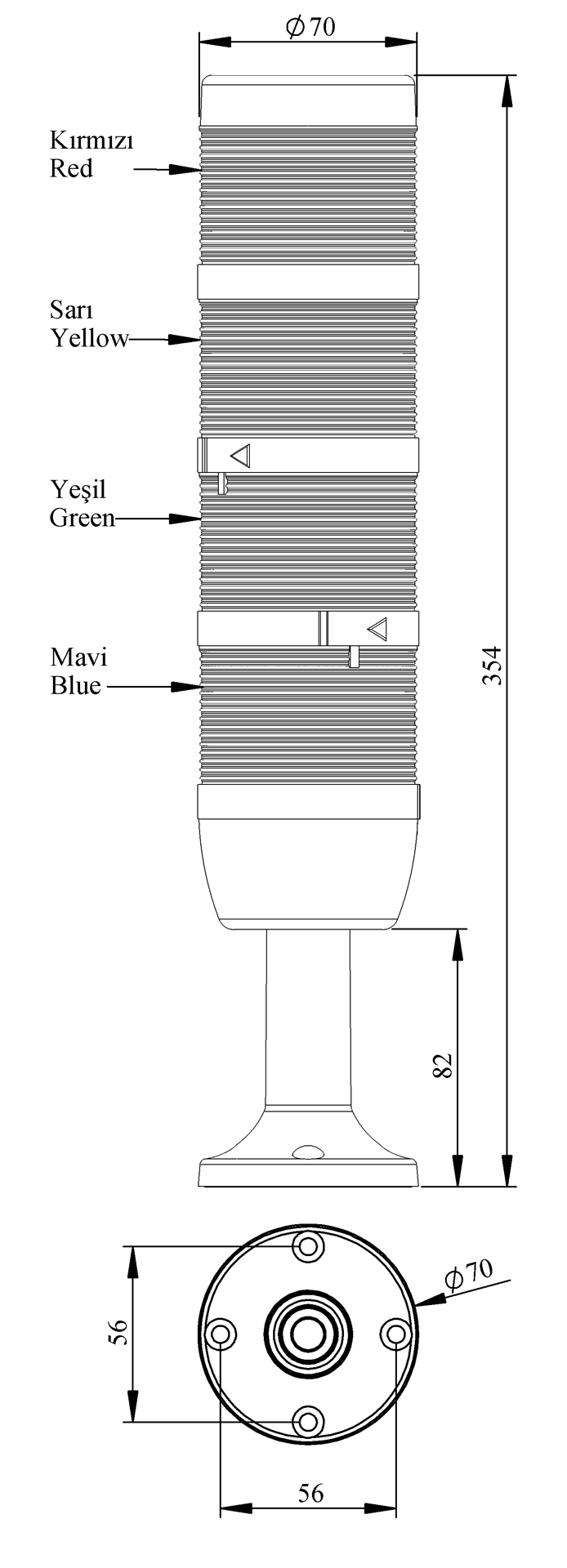 IK Serisi Dört Katlı 220V AC 110mm Etanjlı Plastik Boru ve Ayaklı LED Kolon 70mm