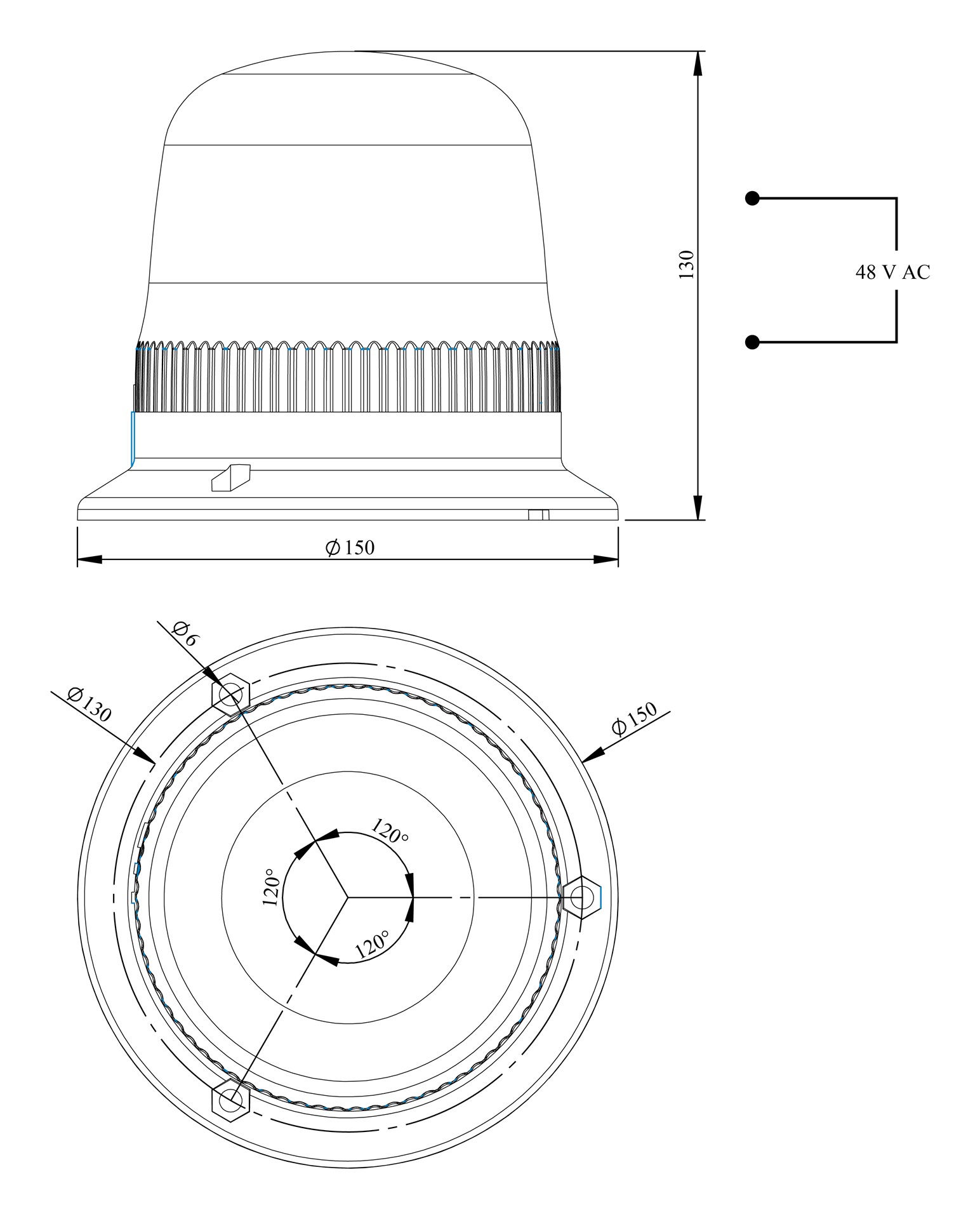 IT Serisi Sarı 48V AC LED Tepe Lambası 120mm