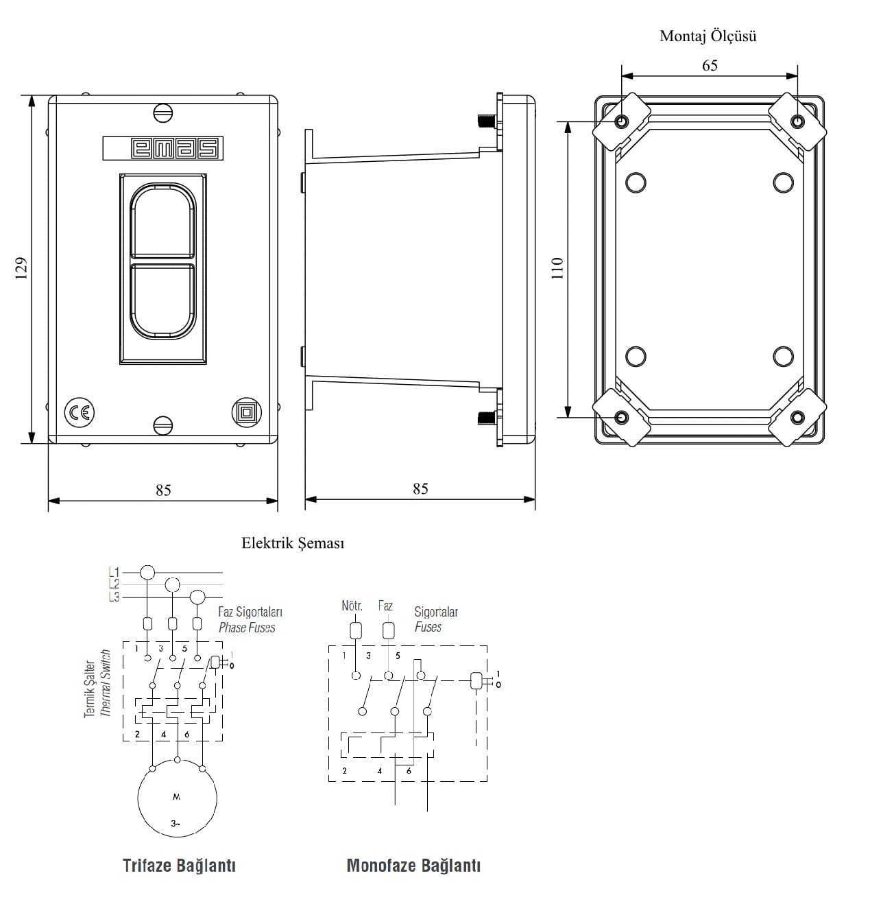 TS Serisi 5,00-8,50A Ankastre Termik Şalter