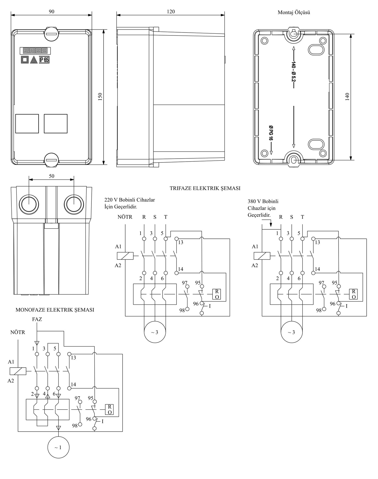 HJ Serisi 9A 220-230V/50-60HZ Start ve Reset Butonlu 1,20-1,75A Termikli Kutulu Kontaktör