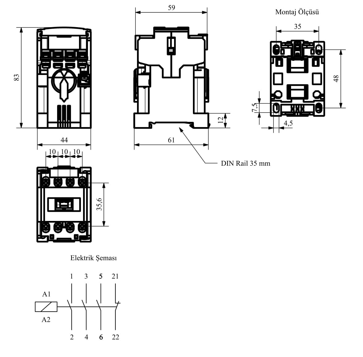 HR Serisi 9A 220-230V/50-60HZ 1NC Kontaktör