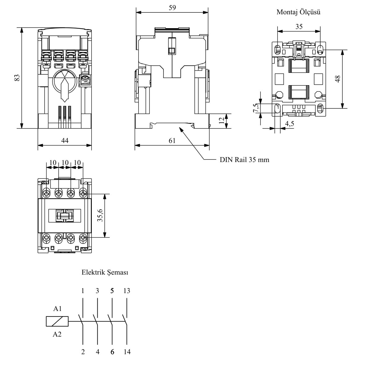 HR Serisi 13A 110-115V/50-60HZ 1NO Kontaktör