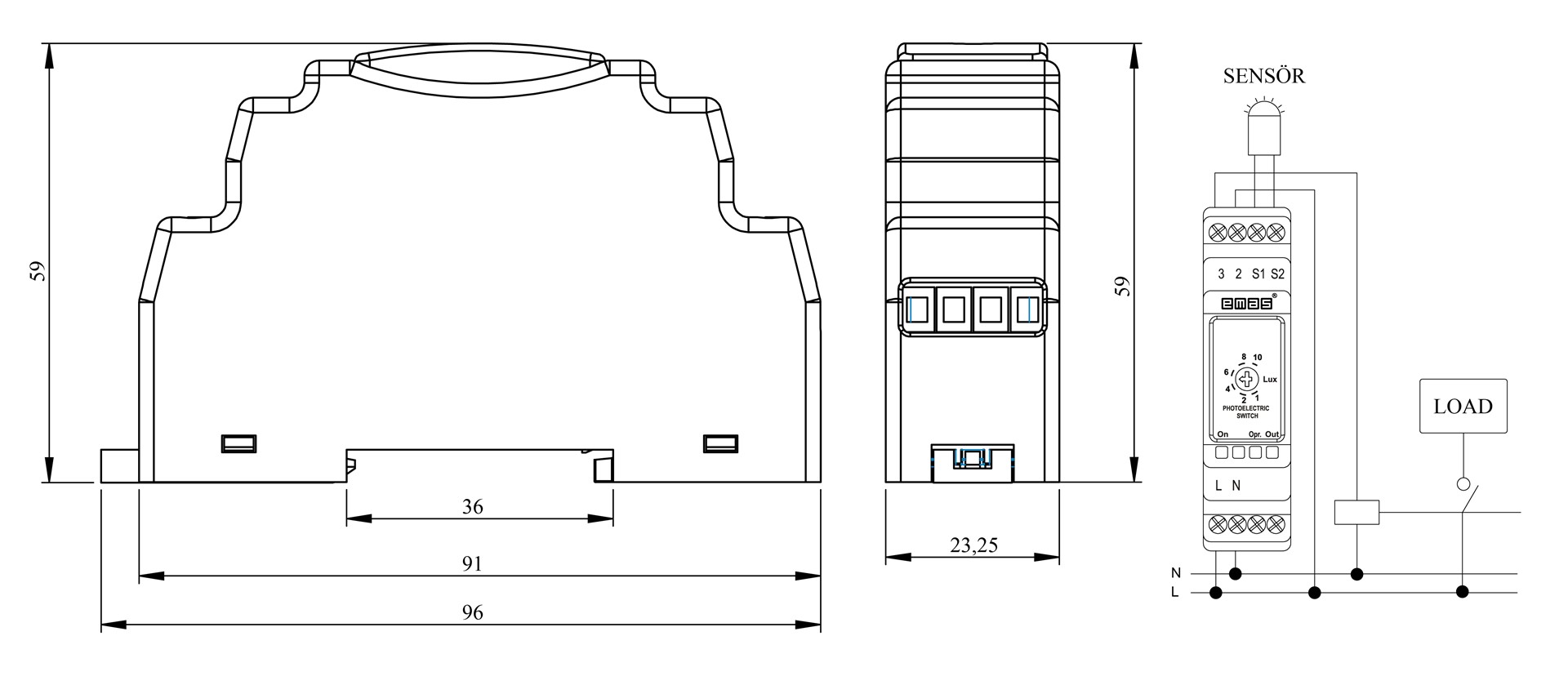 RR3 Serisi Ray Montaj 230VAC 1CO 10A (rezistif) Analog Fotosel Elektronik Röle