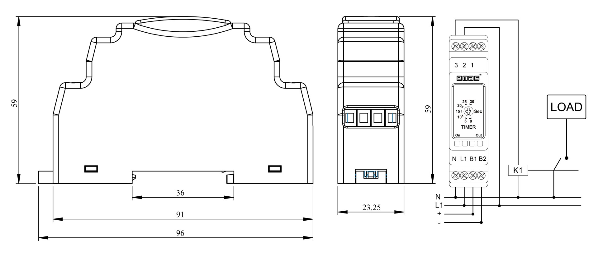RR3 Serisi Ray Montaj 24VAC/DC-230VAC 1CO 10A (rezistif) 0,1-30Sn Analog Zaman Elektronik Röle