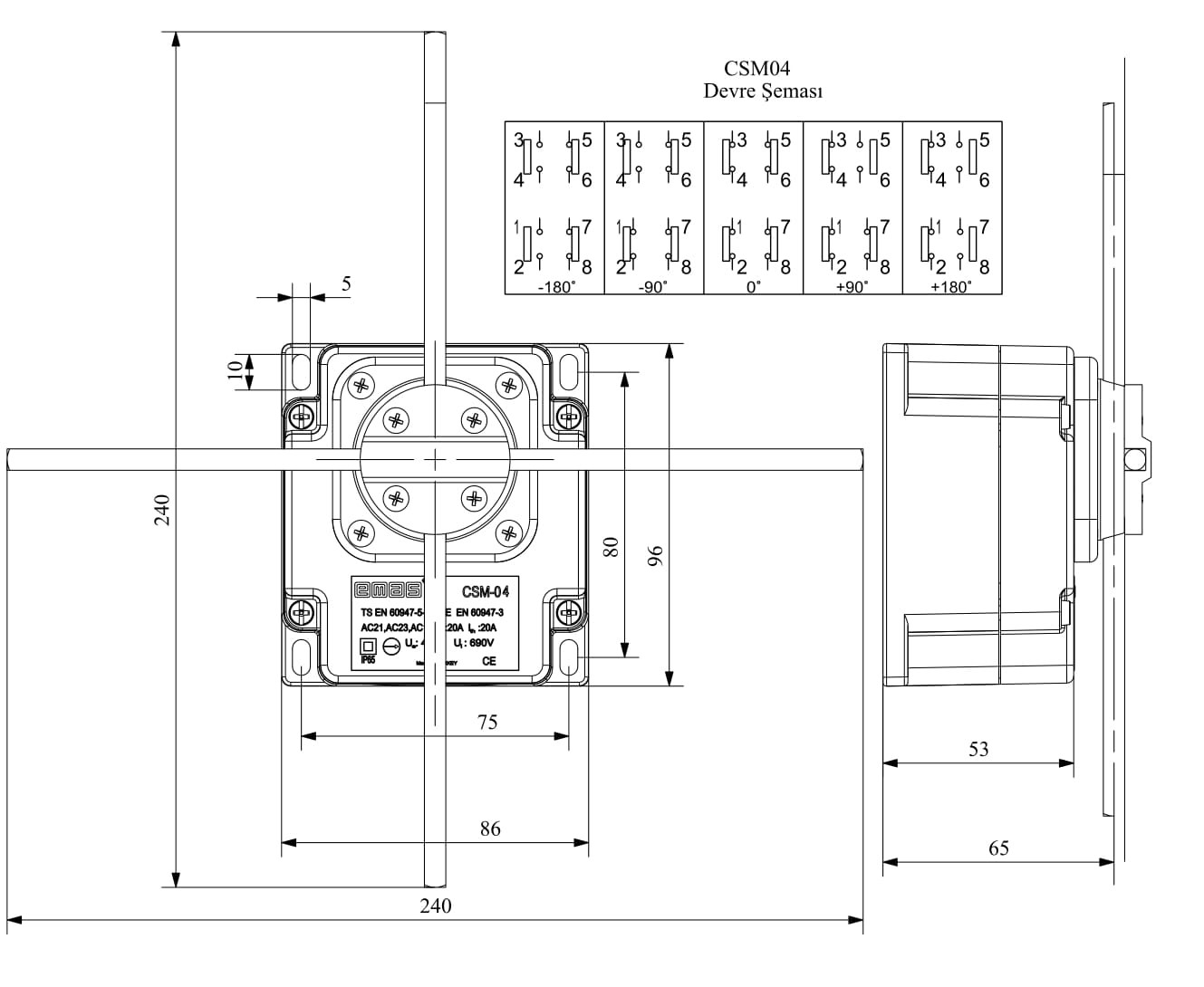 CSM Serisi 360° 2 ileri-2 geri 200 mm Kol Çapraz Sınır Şalteri