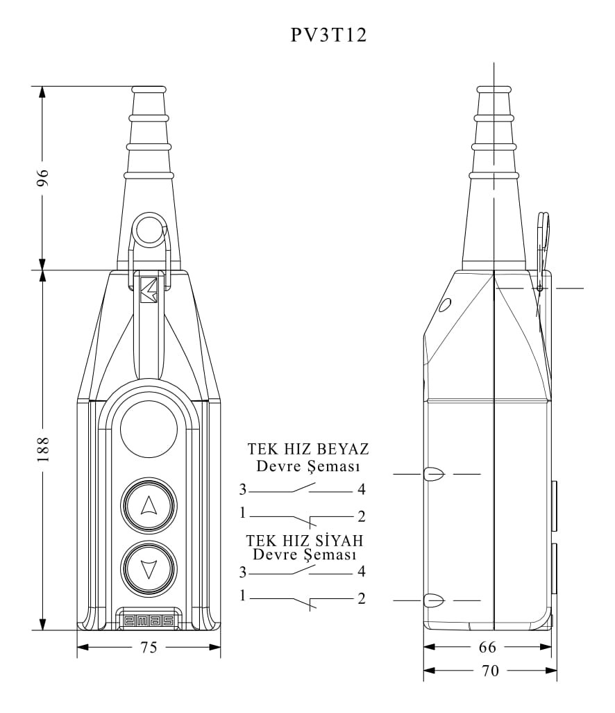 PV Serisi 3 Gözlü Tek Hızlı Körtapalı Vinç Kumanda Kutusu