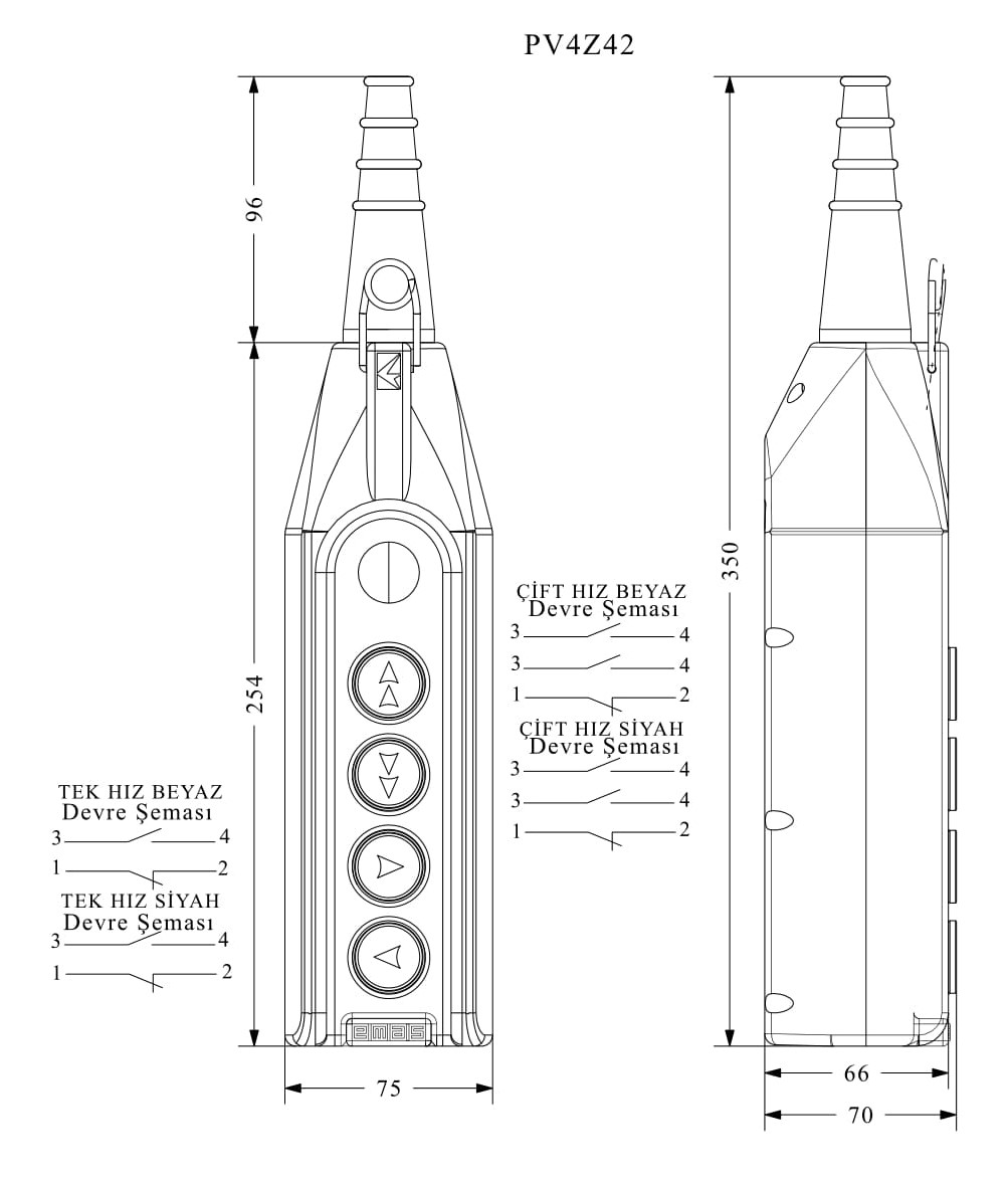PV Serisi 4 Gözlü Tek-Çift Hızlı 1.Delik Kapalı Vinç Kumanda Kutusu