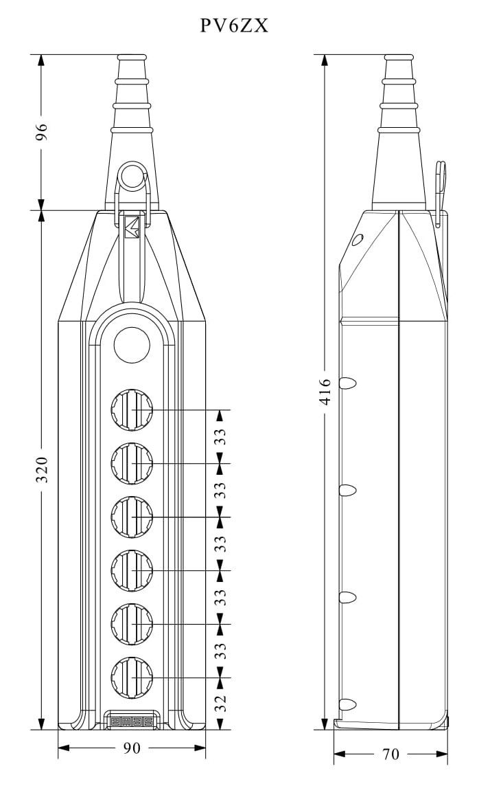PV Serisi 6 Gözlü Boş 1.Delik Kapalı Vinç Kumanda Kutusu