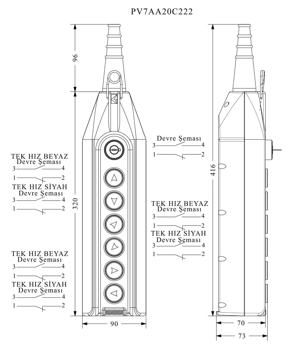 PV Serisi 7 Gözlü Tek Hızlı 1NC+1NO Anahtarlı Vinç Kumanda Kutusu