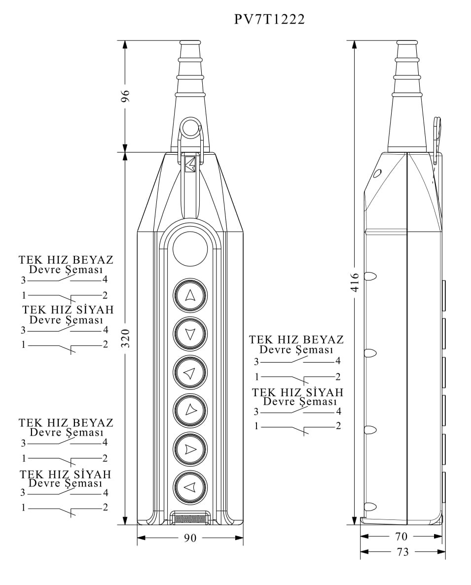 PV Serisi 7 Gözlü Tek Hızlı Körtapalı Vinç Kumanda Kutusu