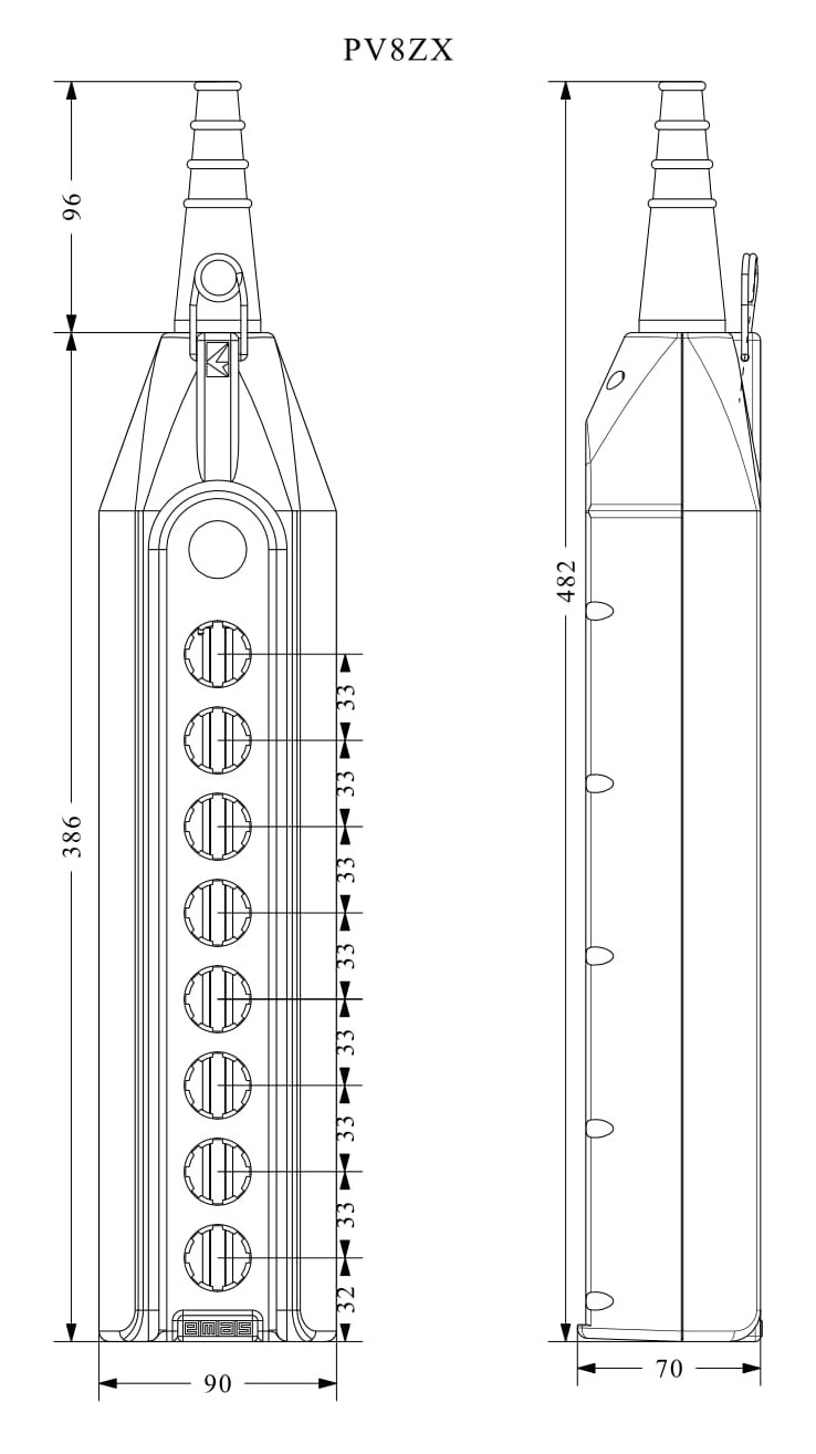 PV Serisi 8 Gözlü Boş 1.Delik Kapalı Vinç Kumanda Kutusu