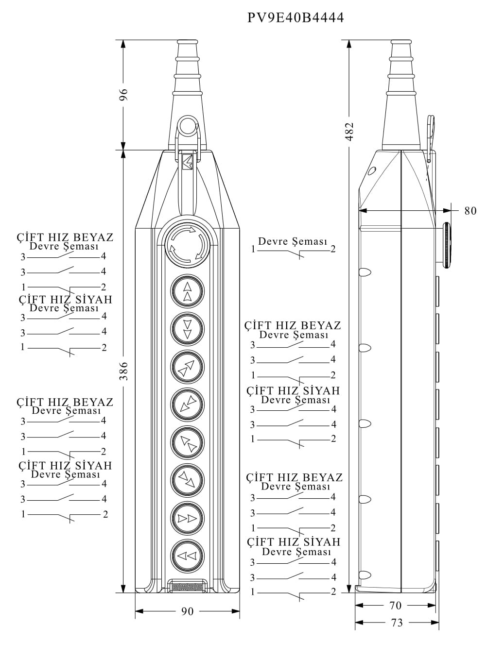 PV Serisi 9 Gözlü Çift Hızlı 1NC Acil Stoplu Vinç Kumanda Kutusu