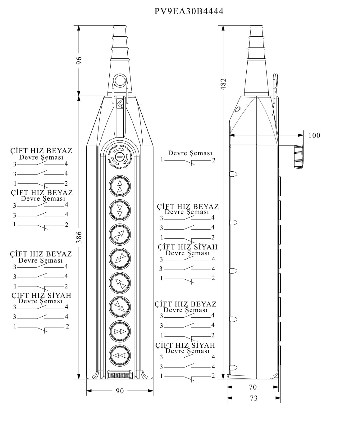 PV Serisi 9 Gözlü Çift Hızlı 1NC Acil Stoplu Çevirmeli Anahtarlı Vinç Kumanda Kutusu