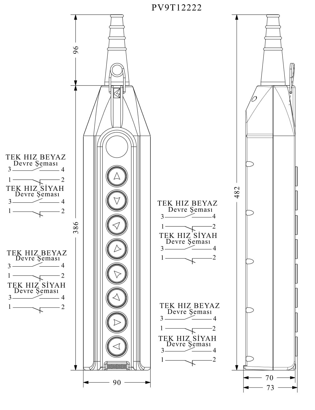 PV Serisi 9 Gözlü Tek Hızlı Körtapalı Vinç Kumanda Kutusu